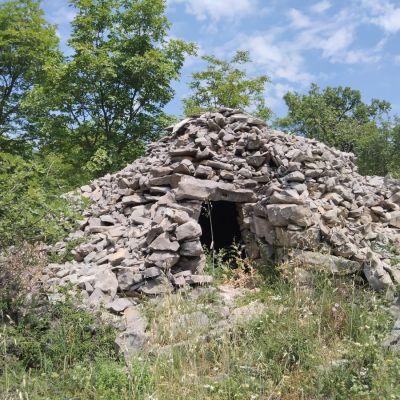 La capanna a falsa cupola è caratterizzata dalla base circolare ed è di forma secondaria a due gradoni. Si trova lungo uno dei sentieri più affascinanti di Monte Pallano, che attraversa il paesaggio agropastorale del versante occidentale dell’altura e che conduce sino a Bomba.